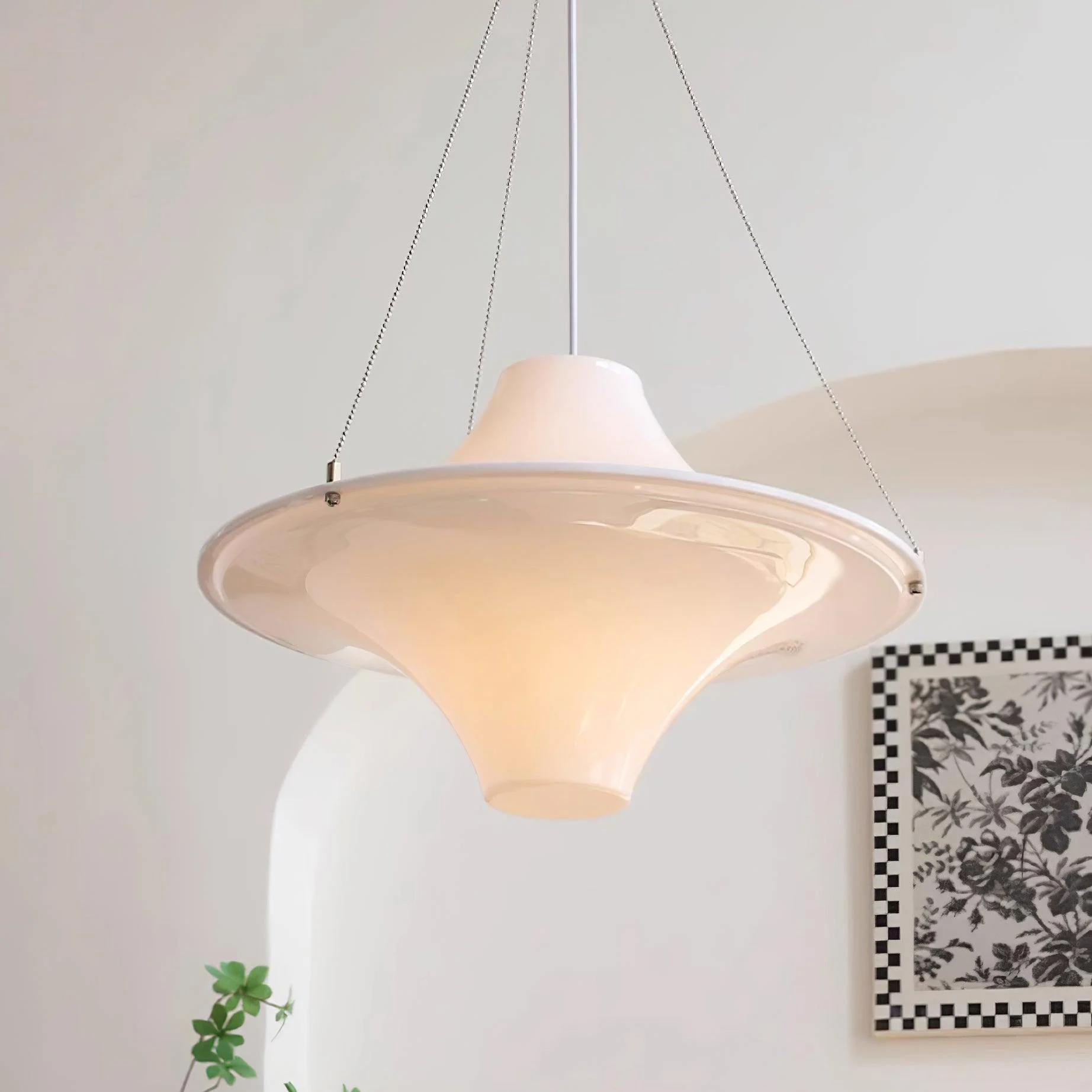 Behold the Lokki Pendant Lamp a marvel of modern design inspired by the intrigue of UFO silhouettes. This sleek fixture features a smooth, rounded acrylic shade that gently diffuses light, reminiscent of a spacecraft gliding through the cosmos. Its form is not only a visual spectacle but also ingeniously directs light precisely where needed, making it a functional piece for spaces seeking focused illumination.