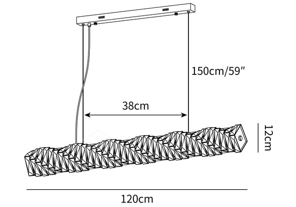 The Long Crystal Pendant Lamp is perfect for above long or rectangle tables, yet would not be out of place above a statement kitchen island. The linear shape lends itself beautifully to the function. Jewelled with K9 Crystal, which is known for the outstanding clarity of the prisms and low inclusions akin to diamonds in that regard and just as sparkly! Refracting and reflecting light.