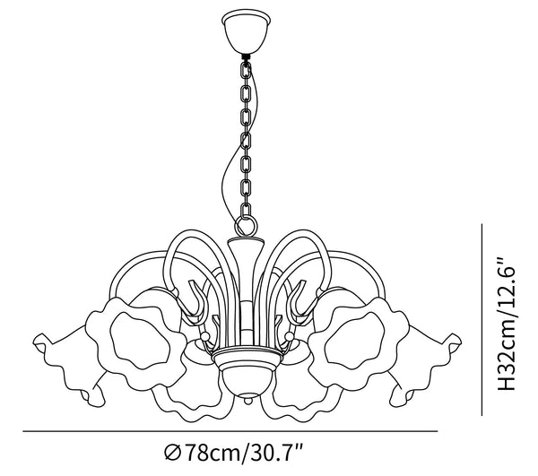 6 Heads Size: Dia 78cm x H 32cm / ∅ 30.7″ x H 12.6″