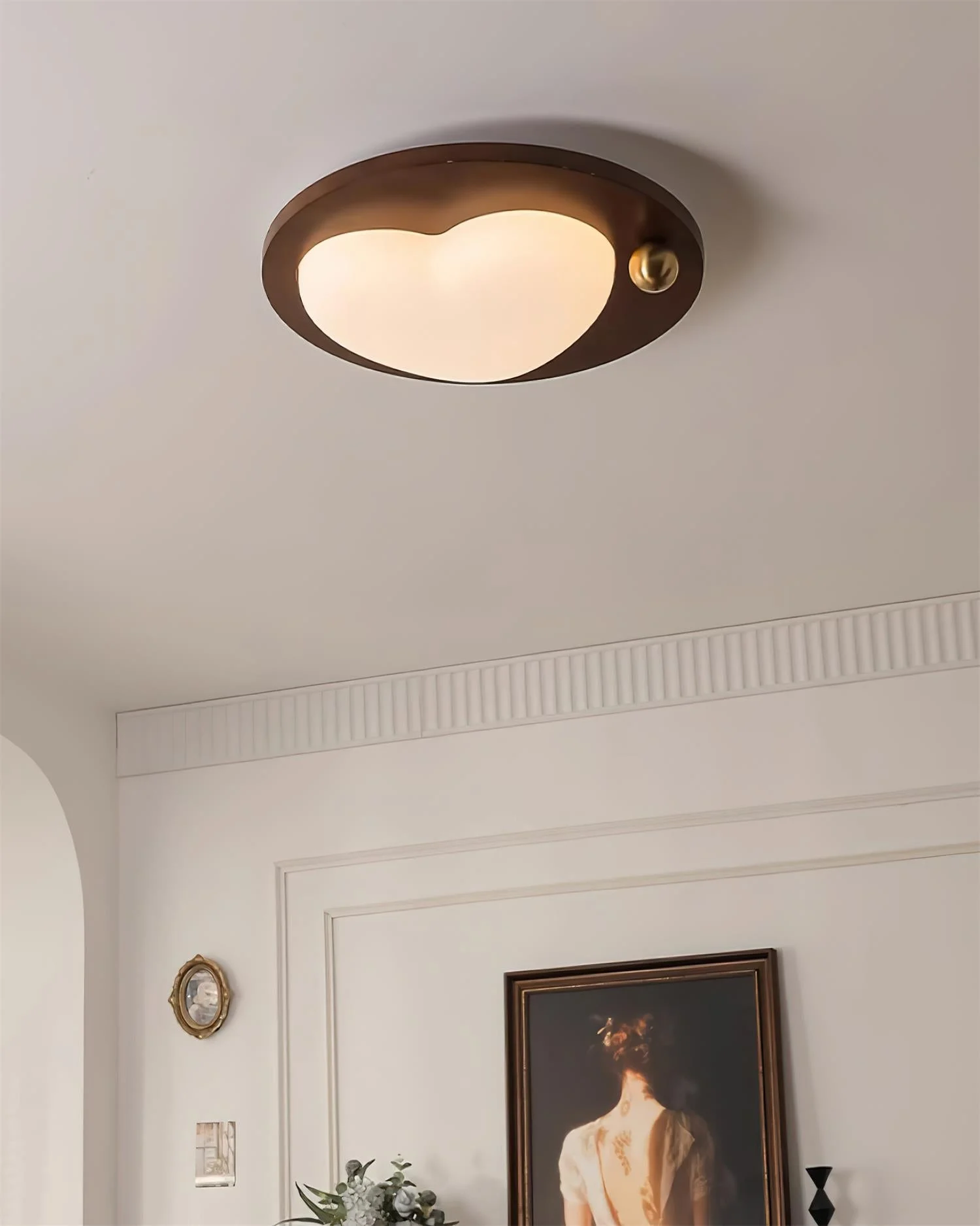 The Lumi Walnut Ceiling Light casts a serene glow that elevates any room with its warm, inviting ambiance. This piece uniquely combines form and function with its smooth, cloud-like silhouette and rich walnut finish, which brings a touch of nature indoors. The golden accent adds a refined detail, enriching the aesthetic and providing a central point of warmth. Ideal for settings that seek to blend modern design with organic elements, this ceiling light promises to be a focal point that enhances the mood and decor of any space.