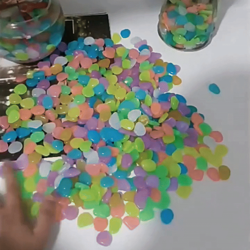 Transform your garden or decoration into a magical sea of lights with the glow stones for garden & decoration. These phosphorescent pebbles charge up with sunlight during the day and glow with a beautiful, soft light at night. Available in different colours, they are the perfect choice to add a unique atmosphere to your outdoor area or decorative elements.
