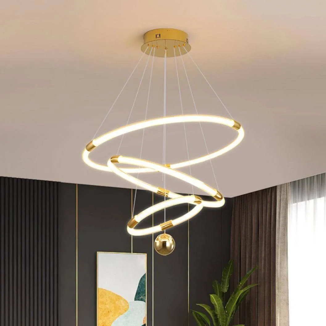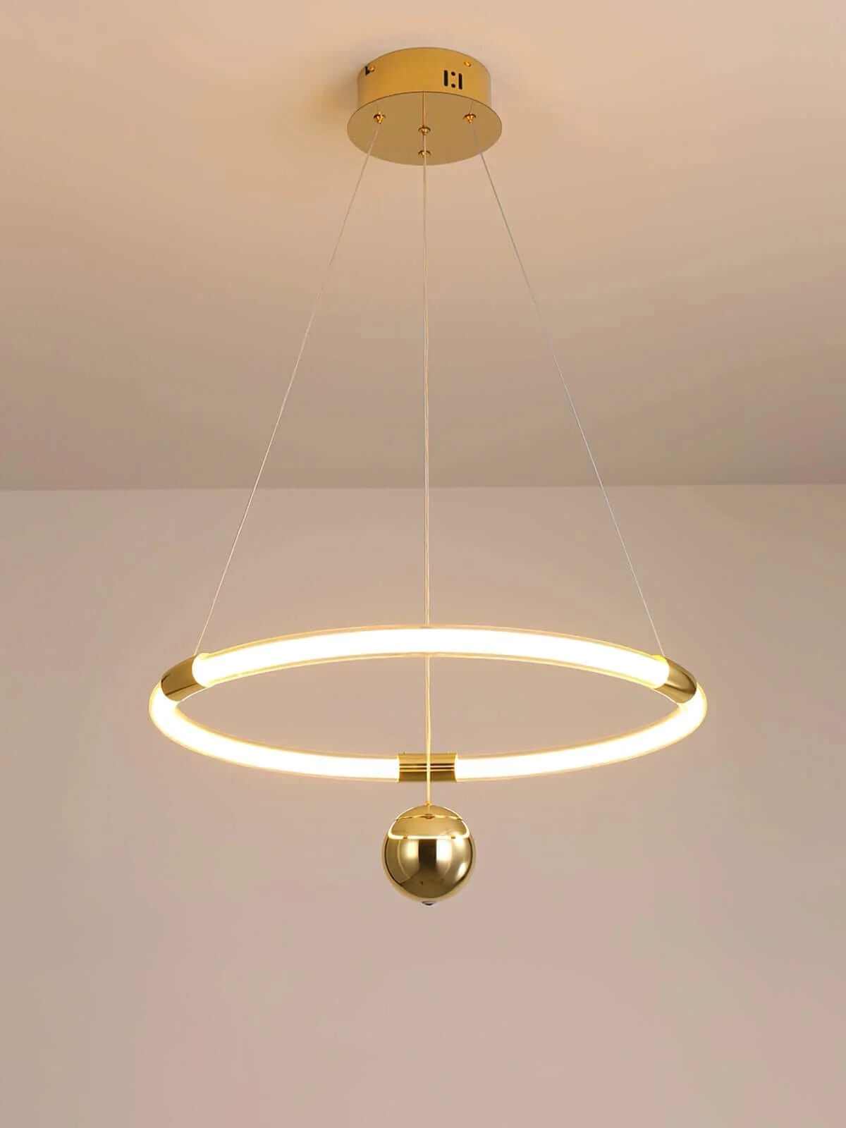Luster Pendant Light is made of high-quality metal and acrylic rings, which are corrosion-resistant and have high light transmittance. Not easily deformed and has good load-bearing capacity. Made of high-quality materials to ensure long-term use of the product. Designed to create a clean, calm atmosphere, the energy-efficient built-in LED pendant light casts a soft halo effect from a large, elegant gold ring. Applications LED pendant lights are an excellent addition to halls, corridors, living rooms, bedrooms, hotels, corridors, stairs, entrances, etc.