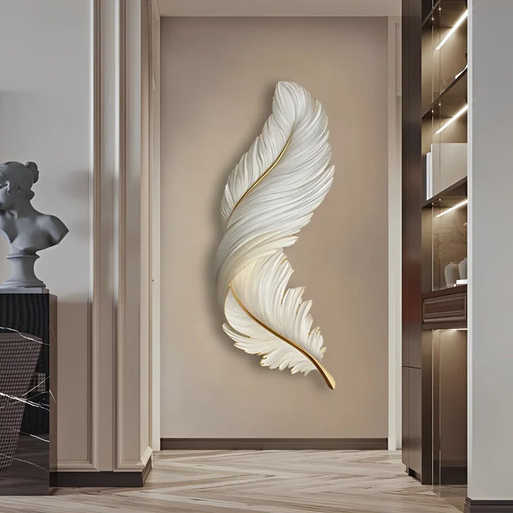- Lighting: The lighting effect is achieved through an LED strip hidden behind the feather. The surface of the feather itself does not emit light; only the LED strip behind it illuminates the space.