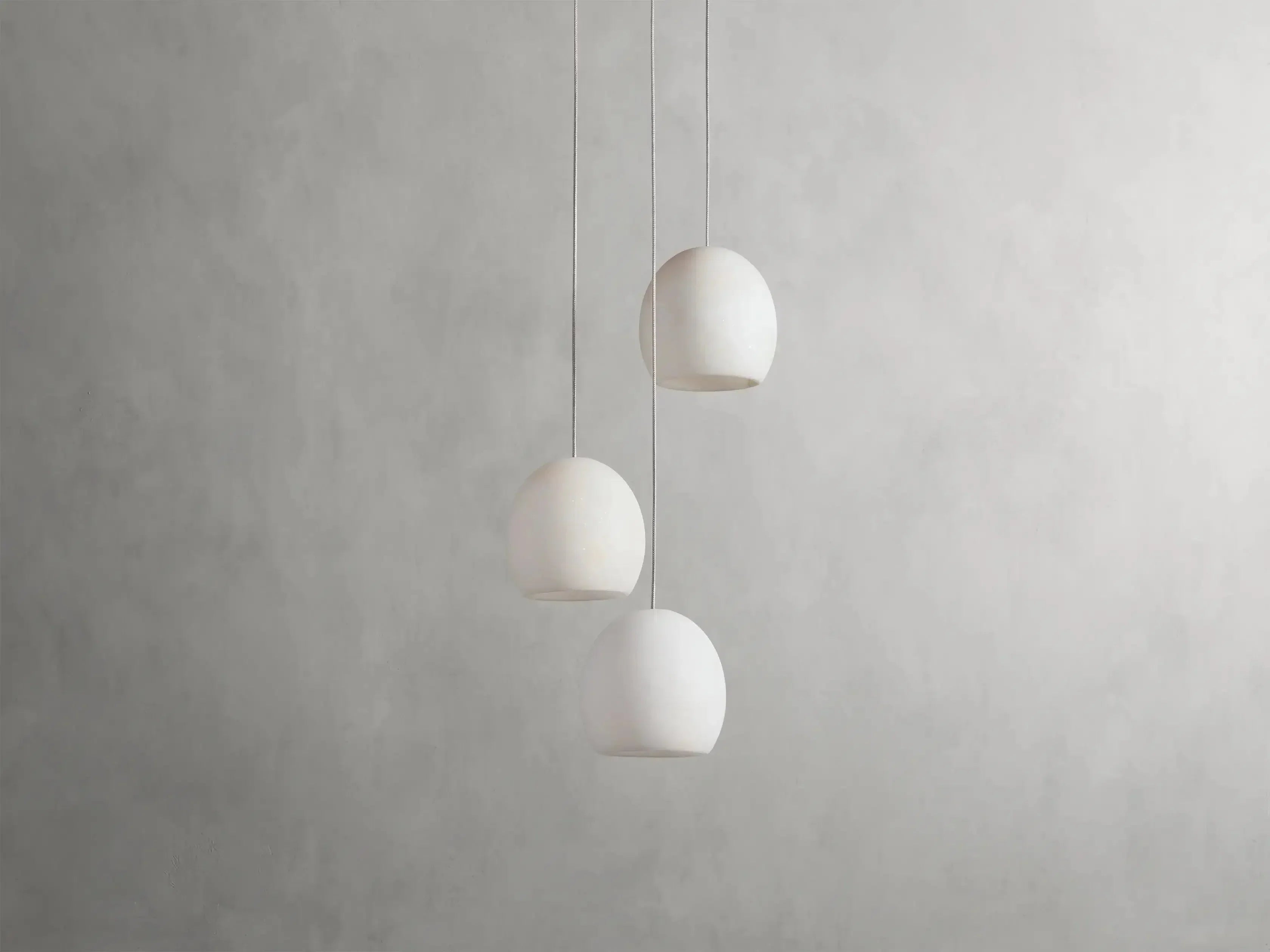 • Featuring an adjustable cable cascading into a curved shade made from natural alabaster stone, our Arica Collection adds a touch of organic elegance. Designed to highlight the beautiful variations found in natural alabaster, each luminous shade showcases delicate swirls of unique veining making each pendant truly one-of-a-kind.