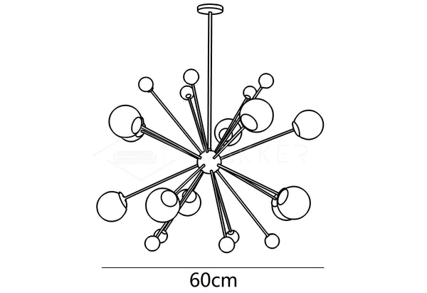 The Chandelier is a theatrical piece of imposing dimensions. The contrast between the air-light hand-blown glass spheres and the density of the brass spheres challenges our perception of weight and weightlessness.