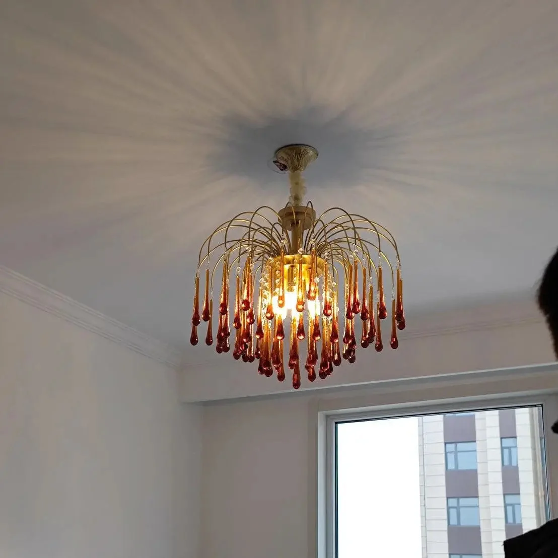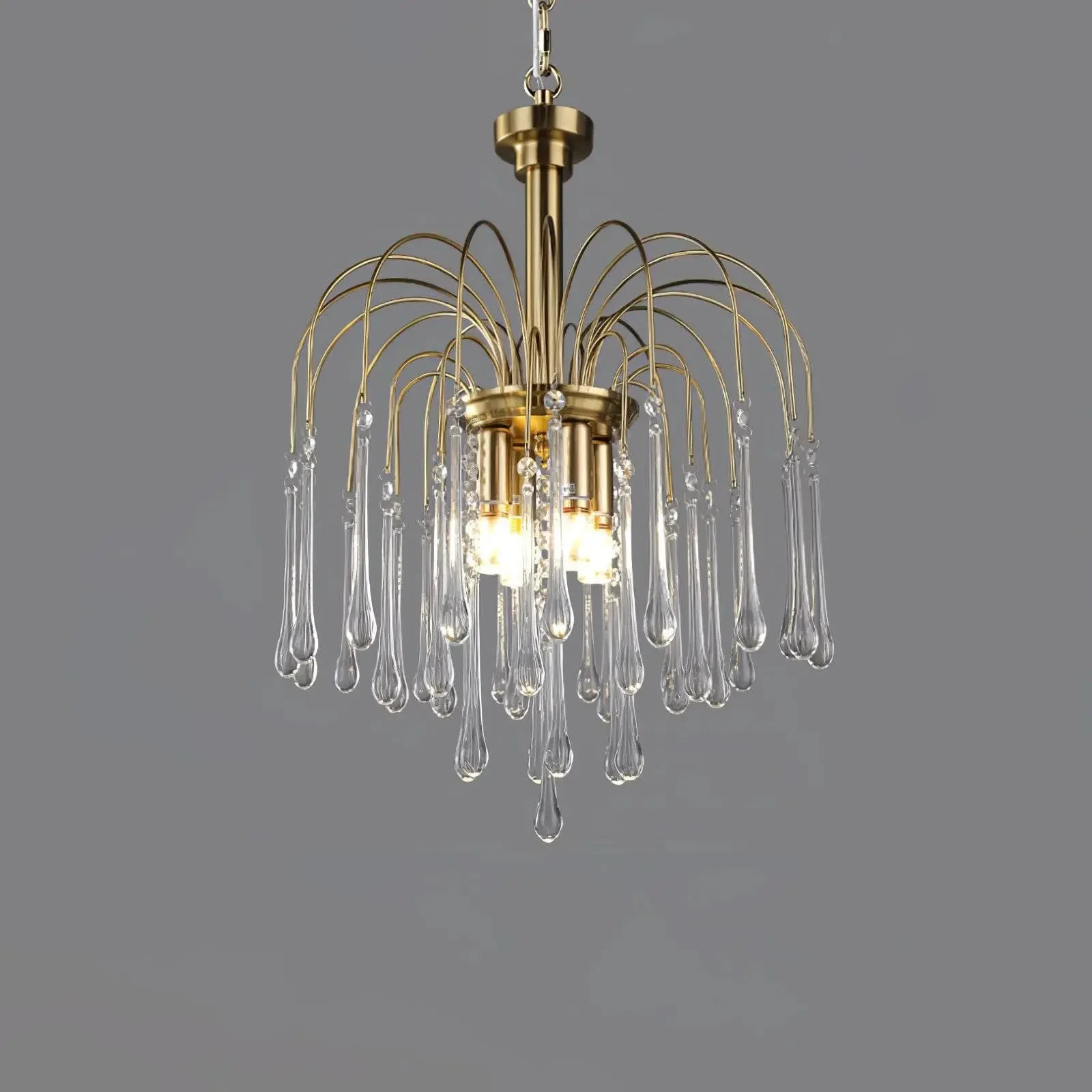 Maltose Chandelier is a stunning blend of vintage elegance and bold silhouettes. This features sleek curved gold finish arms around a decorative central frame, with overlapping tiers of shimmering crystal buttons and drops that create a picturesque cascading light effect and form a dramatic Waterfall effect when illuminated.