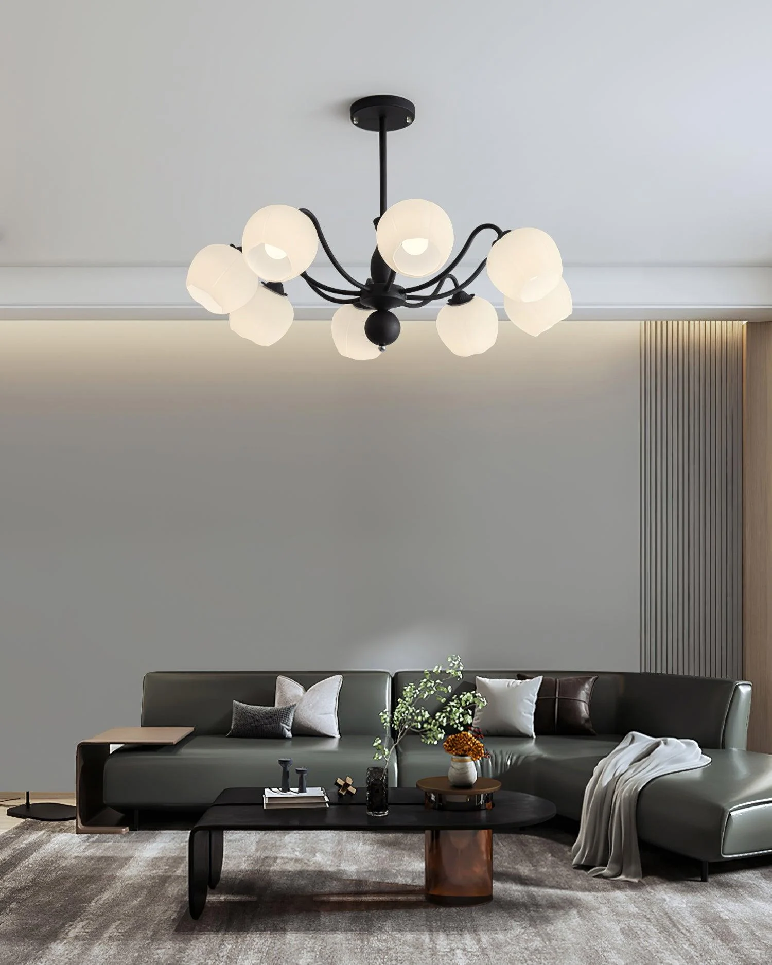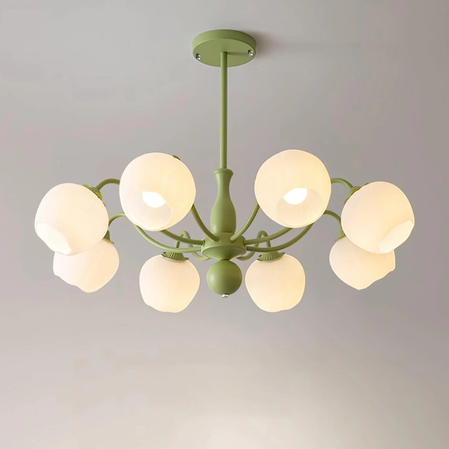Its sleek and simple design intertwines seamlessly with the delicate essence of the lily of the valley, resulting in a unique and captivating aesthetic. Each chandelier branch resembles a blooming flower, delicate and charming, infusing your space with serenity and pleasantness.