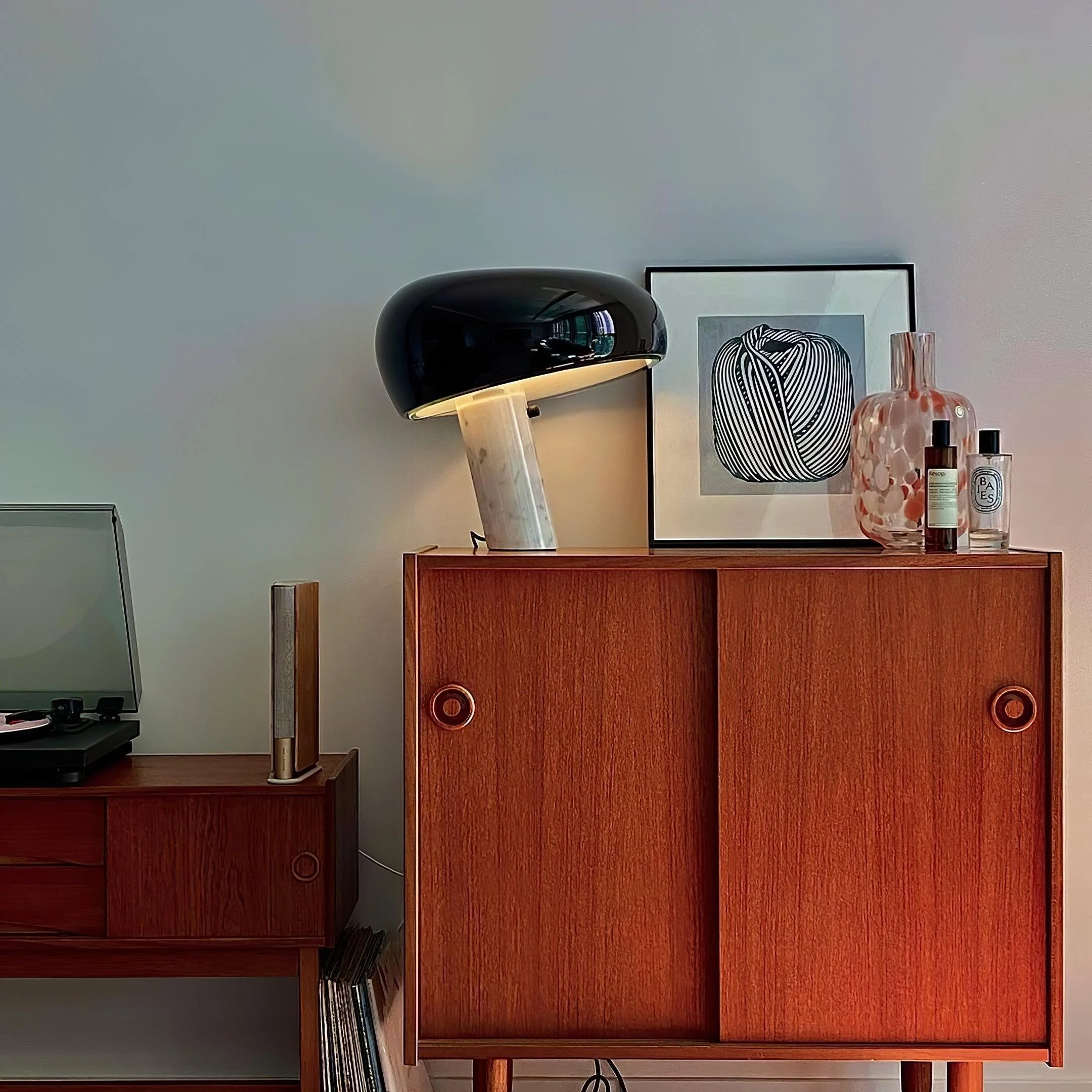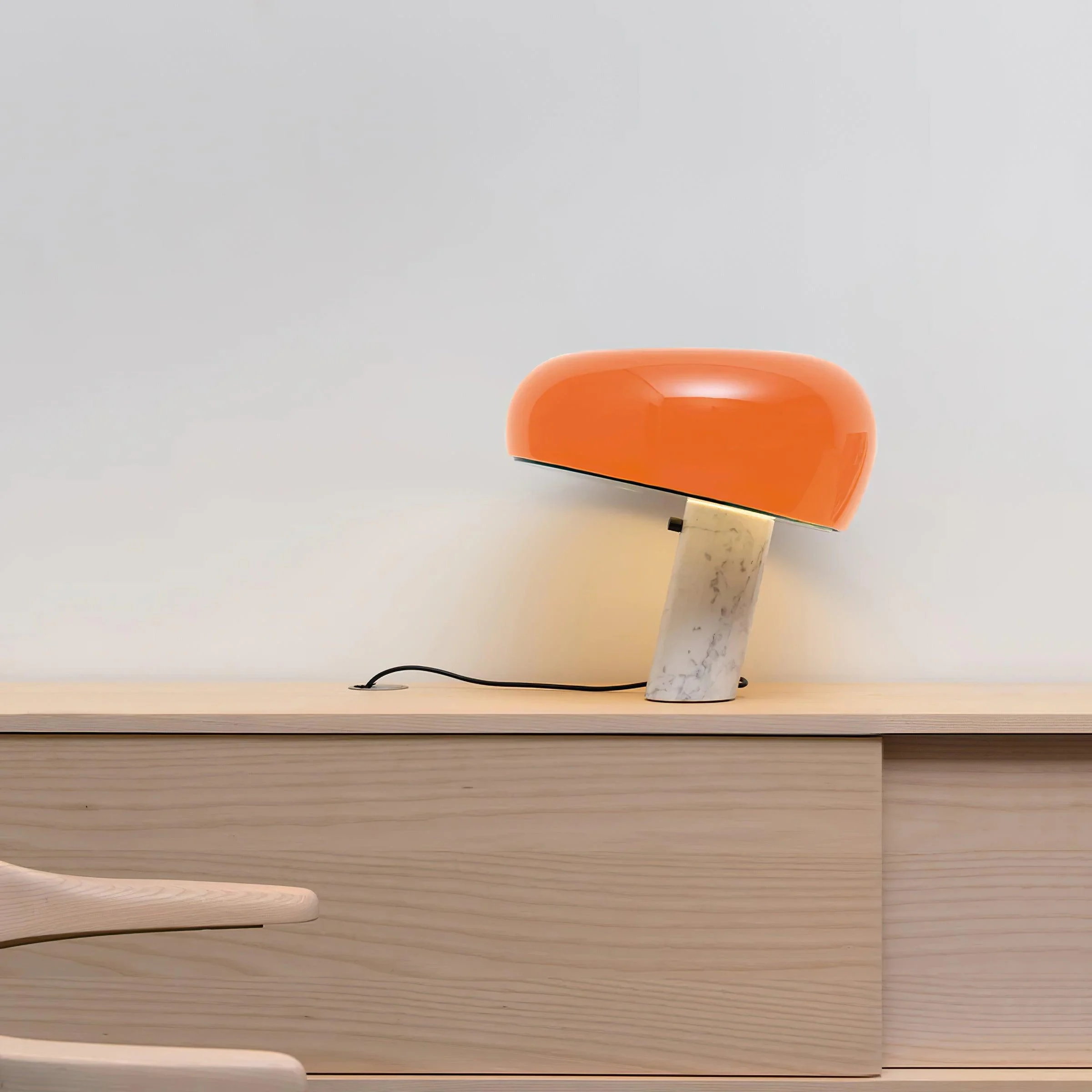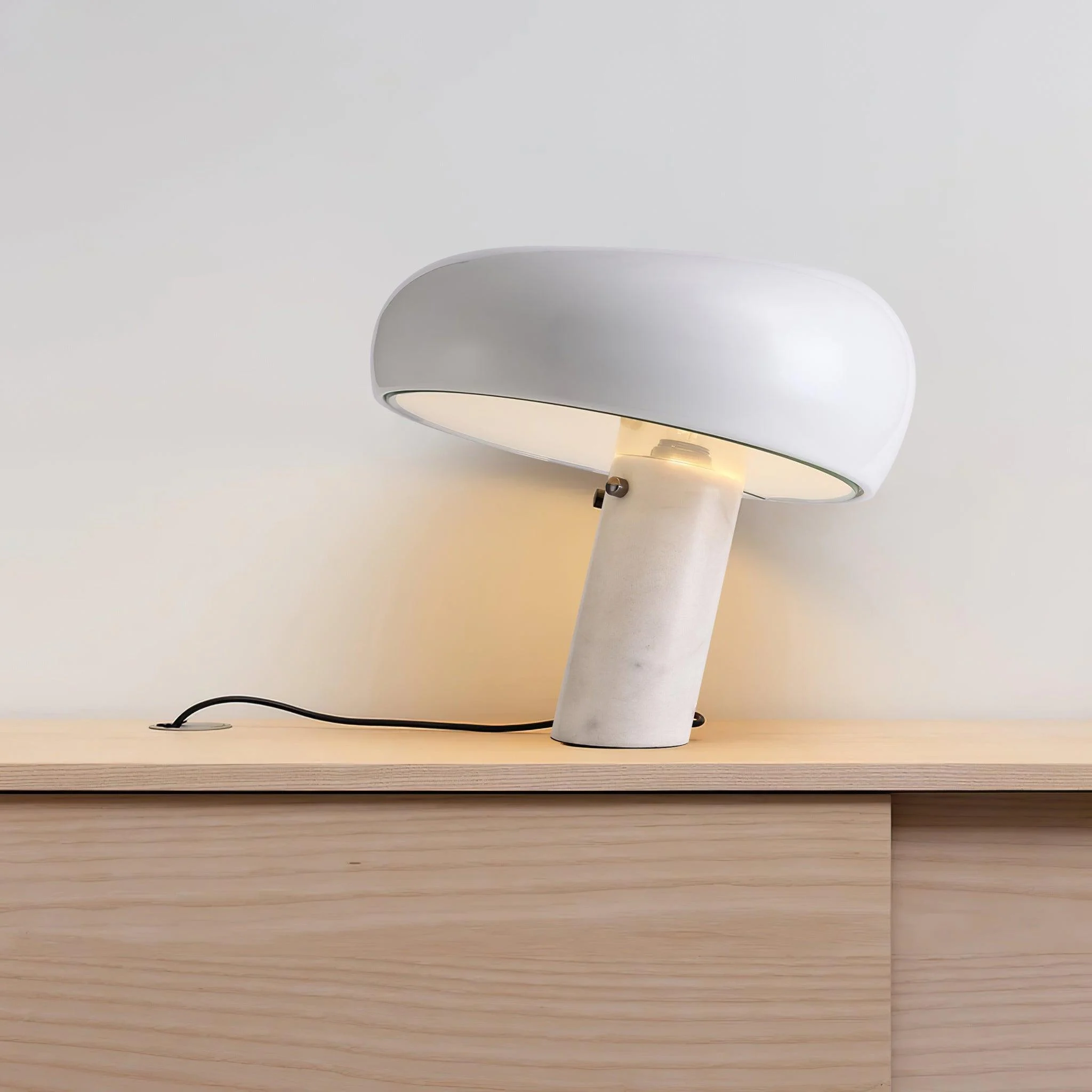 The Marble Anella Table Lamp brings your room to life with its warm glow and iconic silhouette. Its luxurious Italian Carrara marble base and stylish glazed metal reflector create a sophisticated, yet charming statement piece that will provide a delightful ambiance whatever the occasion.