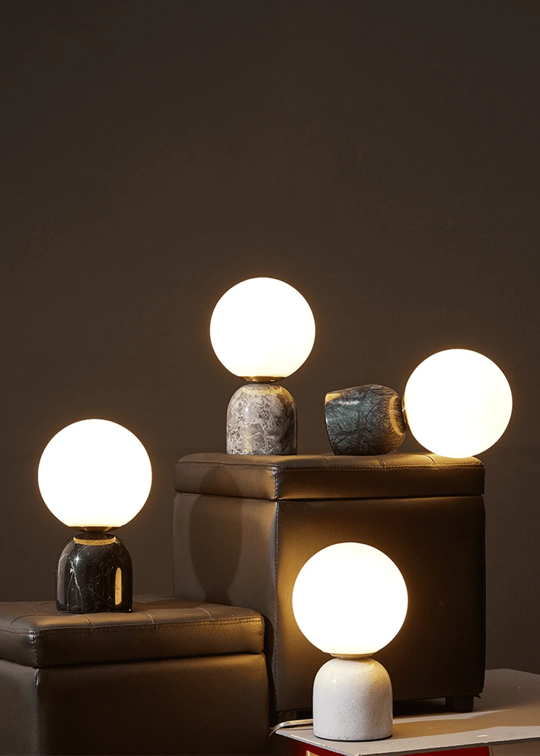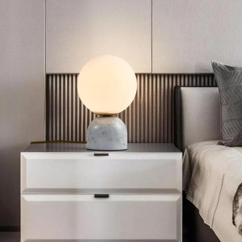 The Marble table lamp Fitted with a frosted opal glass globe like a living plant. It has an in-line cable switch so as not to distract from its elegant simplicity.