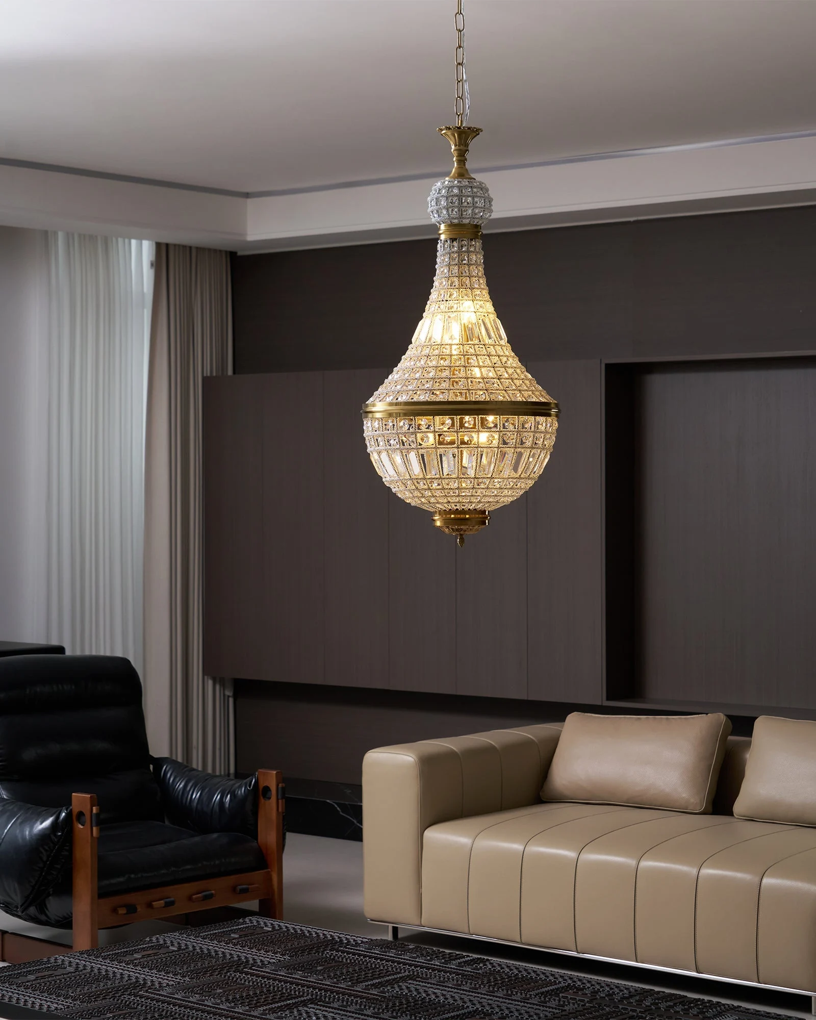 Drape your spaces in the opulent glow of the Marrakech Chandelier, a piece where luxury meets classic design. This chandelier illuminates with the grandeur of a palace, its light reflecting through intricate crystal patterns to cast an enchanting spectrum. The timeless elegance of its silhouette makes it more than just a lighting fixture—it’s a centerpiece that commands attention. Whether lit or not, it exudes a sense of majestic beauty, making any room it graces feel more lavish and inviting.