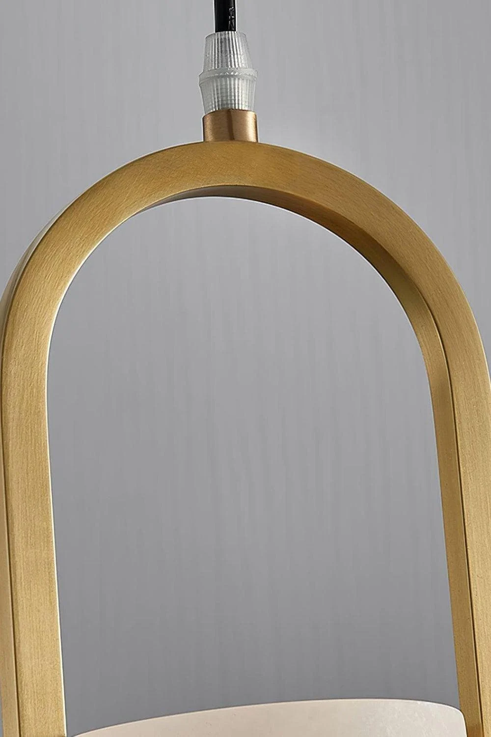Effortlessly pairing natural alabaster and sleek metal detailing in a streamlined geometric form, the Melange Small Pendant Light exudes a modern refinement while emphasizing the beauty of the natural stone.