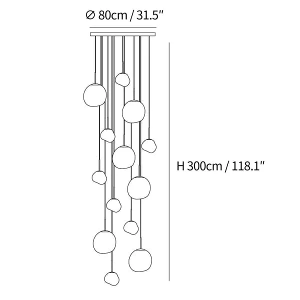 13 heads (18cm*7 / ∅ 7.1″ + 28cm*6 / ∅ 11″)