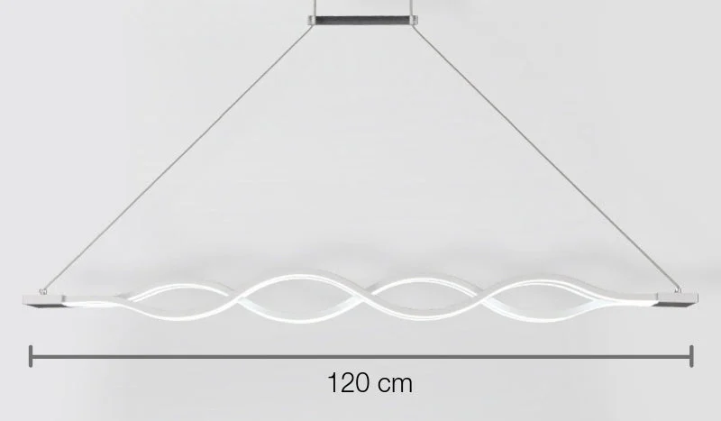 An elegant statement of eye-catching, architectural design, featuring a modern wave shape with a seamless array of light. In modern spaces, the Merra Modern LED Light adds worldly style.