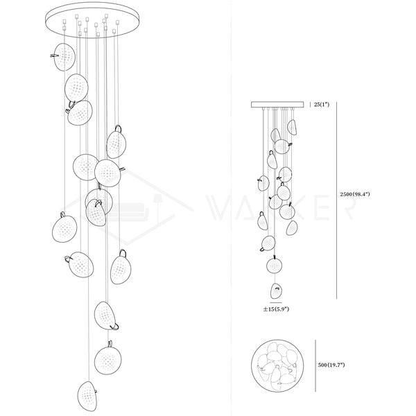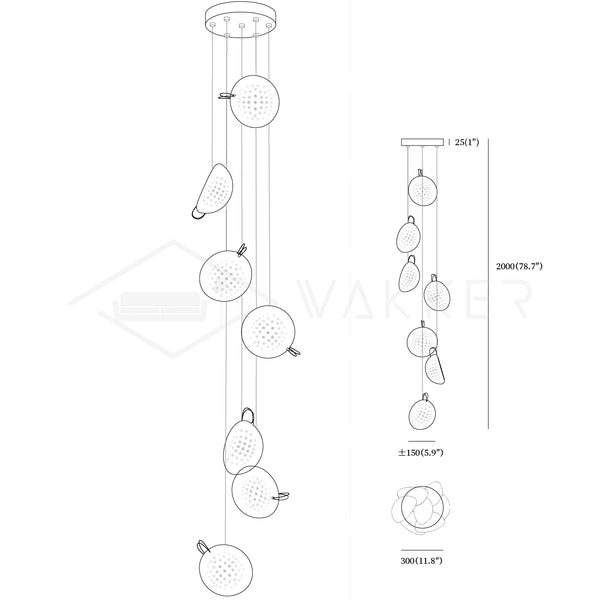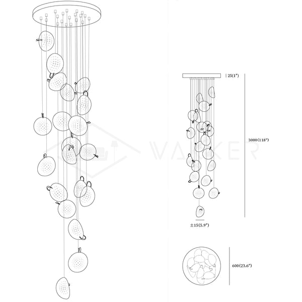 20heads size: Dia 60cm x H 300cm / ∅ 23.6″ x H 118″