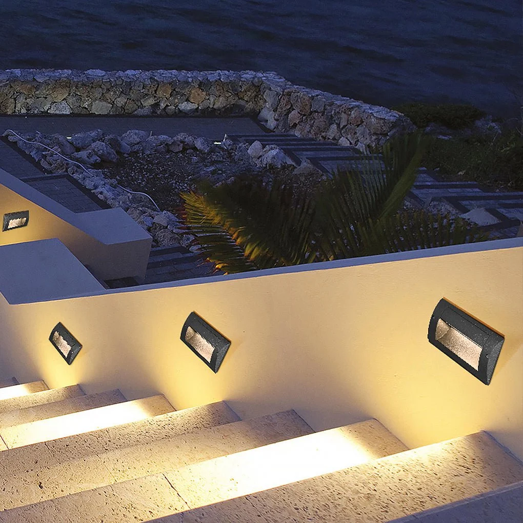- This step light is made of die-cast aluminum material, and its surface is sandblasted for a delicate and textured finish. Built-in energy saving LED lamp beads, with bright light effect and long service life.