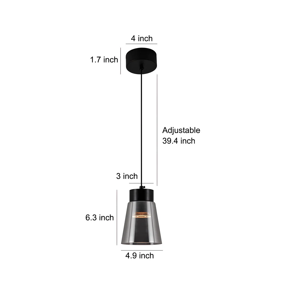 - This hanging light made of aluminum and glass lampshade is sturdy and durable, with fine texture and high light transmittance. Its elegant smoked glass shade makes this glass chandelier perfect for any style decor, from modern to farmhouse.