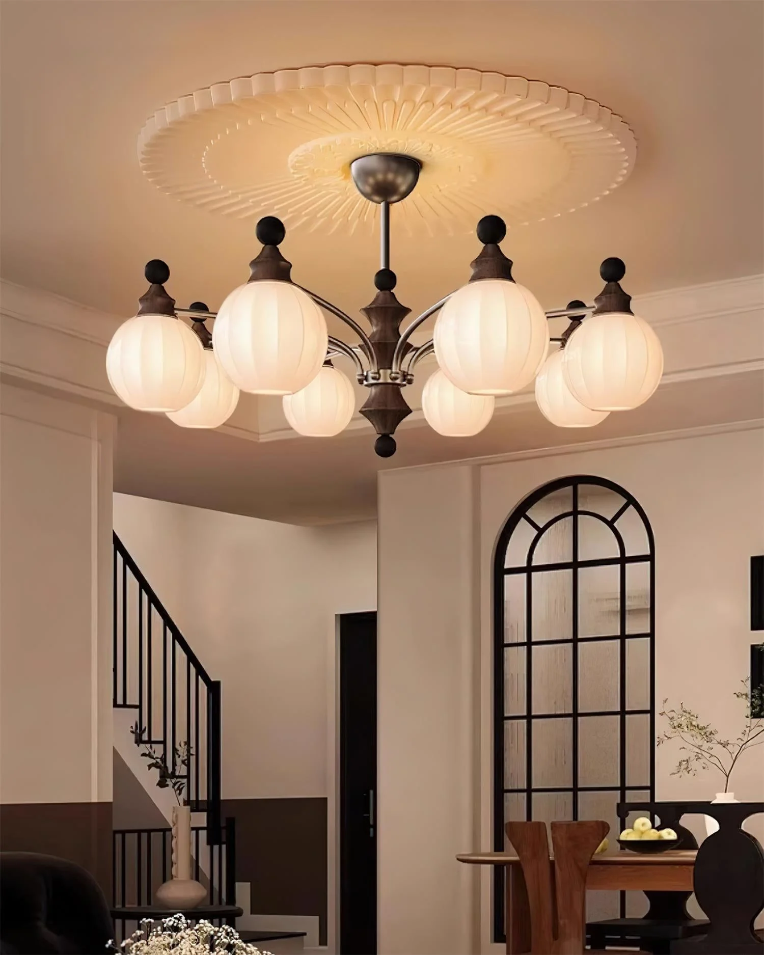 Introducing the “Mirena Chandelier” from Docos, an exquisite centerpiece that marries classic elegance with contemporary design. This chandelier boasts a harmonious arrangement of glass orbs, delicately balanced on a sophisticated bronze frame. Each orb diffuses light softly, ensuring a warm, inviting glow that enhances the ambiance of any room. The detailed ceiling medallion adds a touch of historical charm, making this chandelier a perfect statement piece for both traditional and modern interiors.