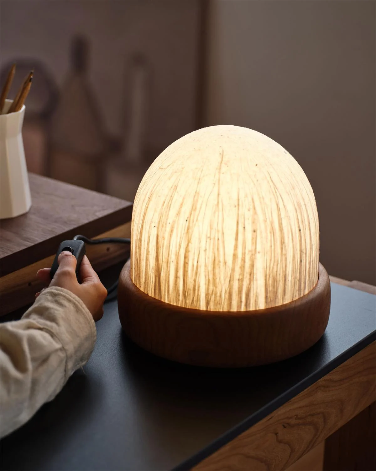 Discover the unique charm of the Mireya Table Lamp, a masterpiece crafted for connoisseurs of subtle elegance. Its shade, fashioned from fine rice paper, casts a soft, enveloping light, transforming any room into a serene retreat. The natural wooden base, with its organic contours, complements the delicate texture of the shade, making this lamp a standout piece.