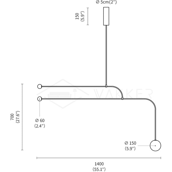 Mobile Chandelier 7 size: L 25cm x H 150cm / L 9.8″ x H 59″