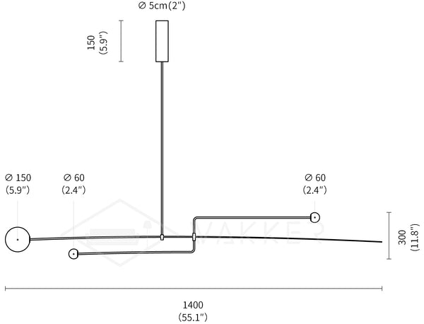 Mobile Chandelier 3 size: L 140cm x H 30cm / L 55.1″ x H 11.8″ (G4 AC 120V )