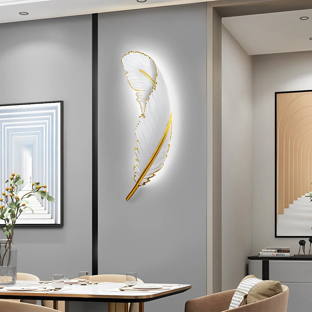 - This unique art decorative wall sconce is made of resin mold with smooth lines and clear texture creating feather design. Hand-painted gilt strokes make this wall lamp more textured and luxurious.