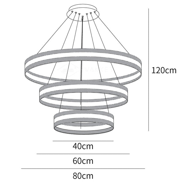 Three Layers Size: Dia 40cm +Dia 60cm +Dia 80cm x H 120cm / ∅ 19.7″ + ∅ 23.6″ + ∅ 31.5″ x H 47.2″ ( Power~180W)