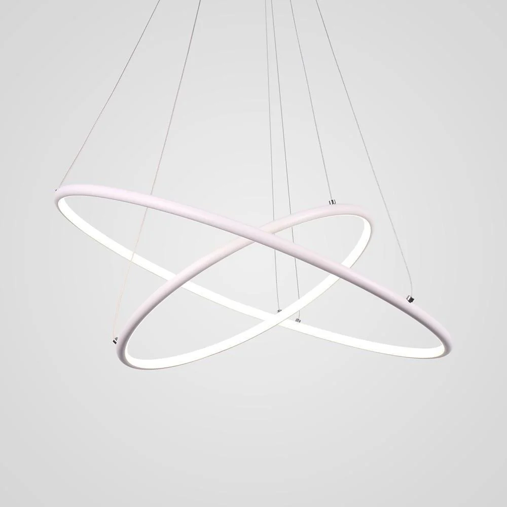 - Elevate your home’s ambiance with our Modern LED Chandelier, designed to bring contemporary elegance and functionality to any space. Featuring two interlocking rings with a sleek white finish, this chandelier serves as both a lighting fixture and a statement piece. The minimalist geometric design is perfect for modern interiors, seamlessly enhancing dining rooms, living areas, or kitchens.