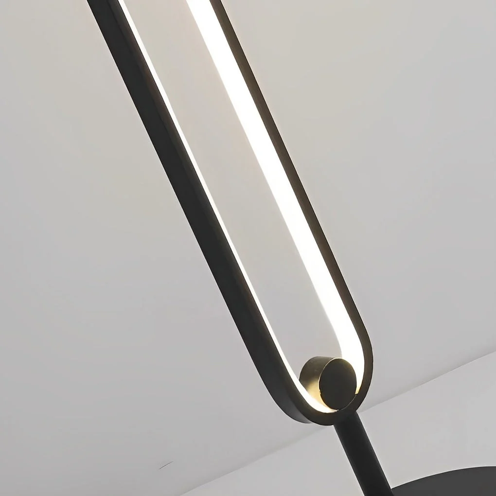 - Sculptural oval shade and metal standing lamp creates a fun, modern looking LED floor lamp.