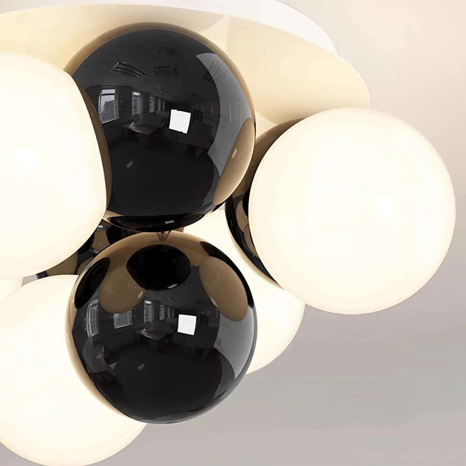 The Modo Bubble Ceiling Light is a masterclass in minimalist, creative design. With its harmonious arrangement of orbs in hues of yellow, black, and white, it offers more than mere illumination; it creates an inviting, warm atmosphere. The playful yet sophisticated cluster of bubbles seems to float effortlessly, casting a soft, diffused light that enhances the coziness of any space.