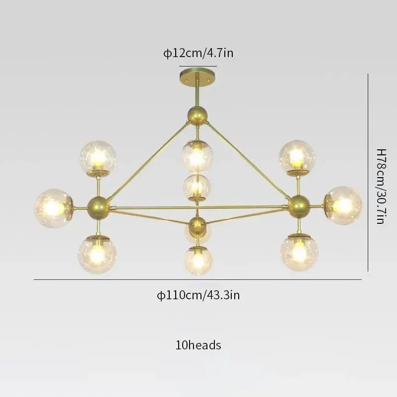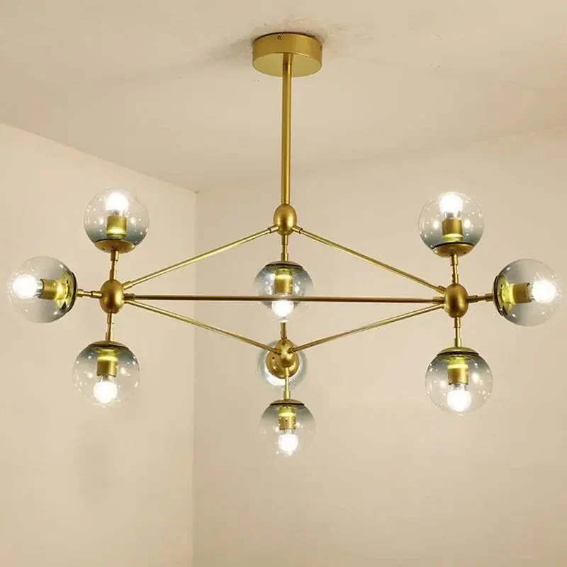 Decorate your living space with the beautifully modern look of this Modo Chandeliers. It comes in an open geometric frame made of several angular rods. The vintage-style cognac glass globes create a welcoming diffusion of light. This design is perfect for a Mid-Century Modern or upscale loft setting.