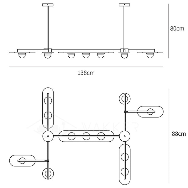 Suspension rod length 50cm+50cm/19.7″+19.7. The length of the suspension rod can be varied upon request.