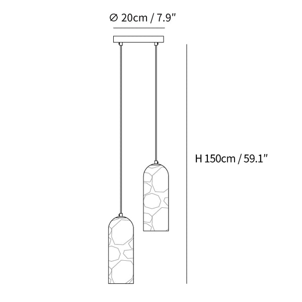 2 heads Round canopy Size: Dia 20cm x H 150cm / ∅ 7.9″ x H 59.1″