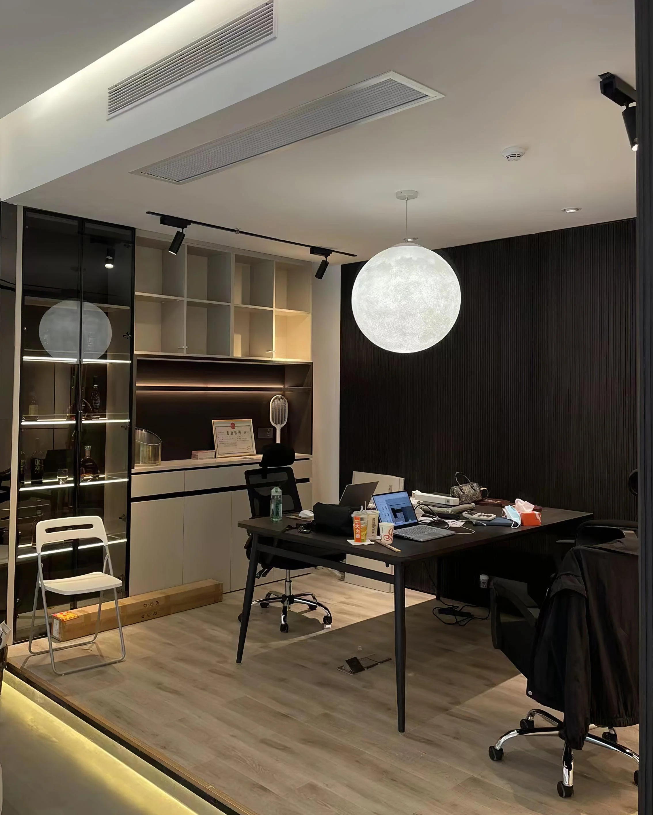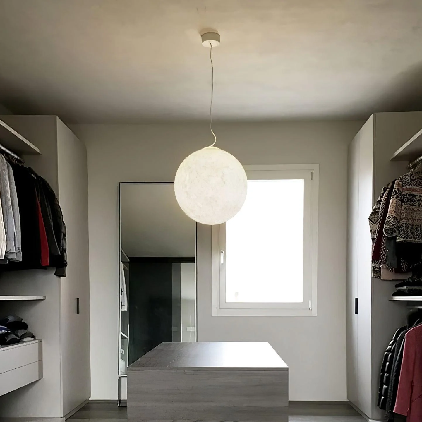 Create a unique and dreamy ambiance in any room with the Moon Pendant Lamp. Featuring a stunning, realistic sculpture of the full moon, this sophisticated piece is perfect for setting the mood for a special night, whether it’s for romance or serene relaxation.