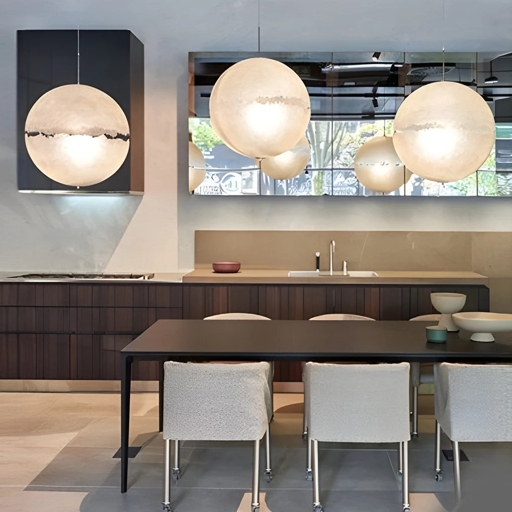 - The lunar chandelier is made of resin material, and the surface texture of the lamp body is natural and clear. And its light transmittance is high, and the light it transmits is bright and uniform without being dazzling.
