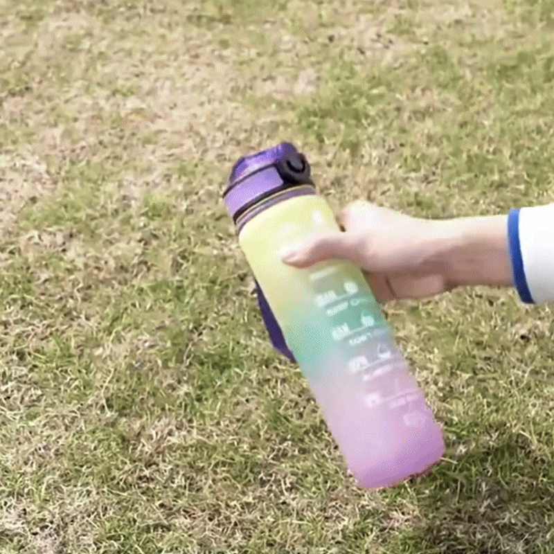 Do you feel like you don’t drink enough water? With the motivational water bottle with time markings, you’ll never forget to hydrate again! The clever markings with motivational slogans and times help you to drink enough water throughout the day. Perfect for everyday life, sports, work or on the go – you’ll achieve your hydration goals effortlessly!