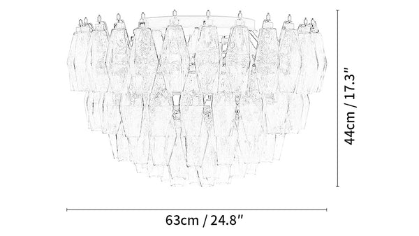 Murano Poliedri Smoked Ceiling Light, add a touch of elegance to your home. A true masterpiece of glass craftsmanship, this lamp is made up of 84 Smoked glass. With smoky and clear glass, it adds a vibrant and dynamic atmosphere to any room. The elegant and streamlined design makes it ideal for mounting directly on the ceiling or rosette for harmonious integration with your decor.