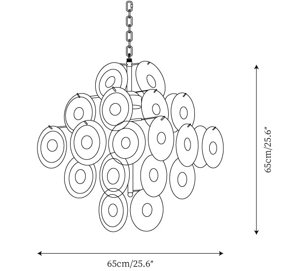 Size: ∅ 65cm x H 65cm / Dia 25.6″ x H 25.6″ (uses six E14 bulbs)