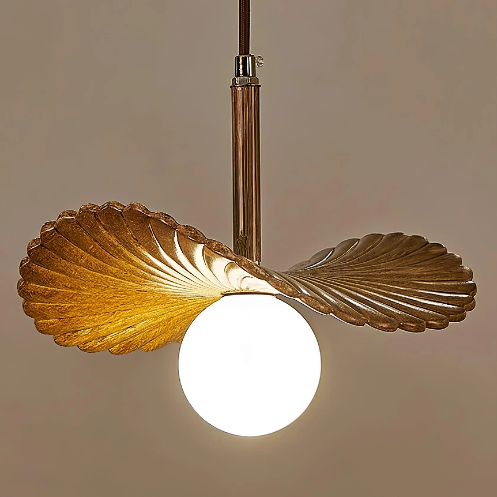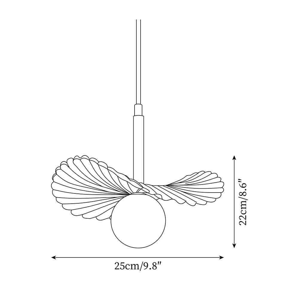 The Myrna Pendant Lamp distinguishes any space with its unique design and meticulous craftsmanship. Drawing inspiration from the grace of birds in flight, the lampshade features elegant fan-like lines that cleverly mimic the lightness and beauty of wings.