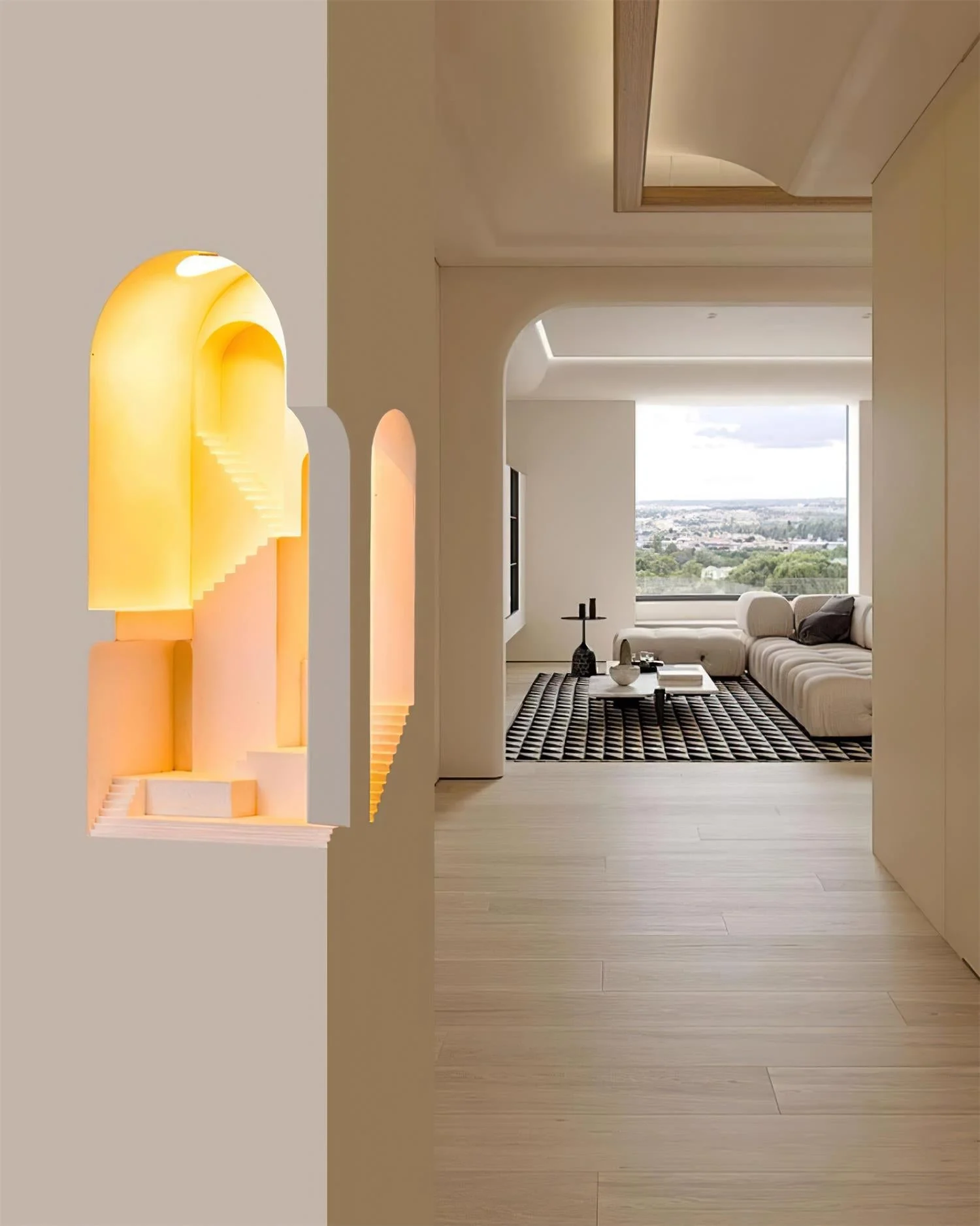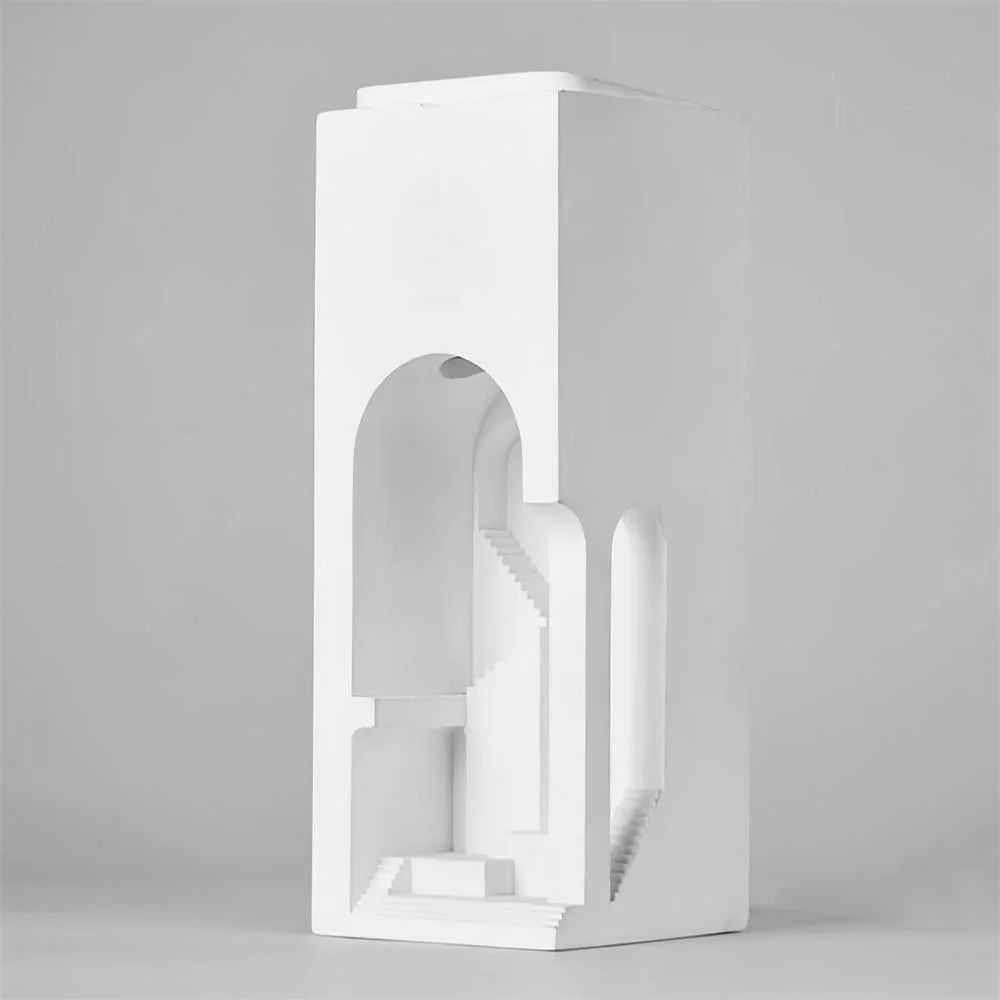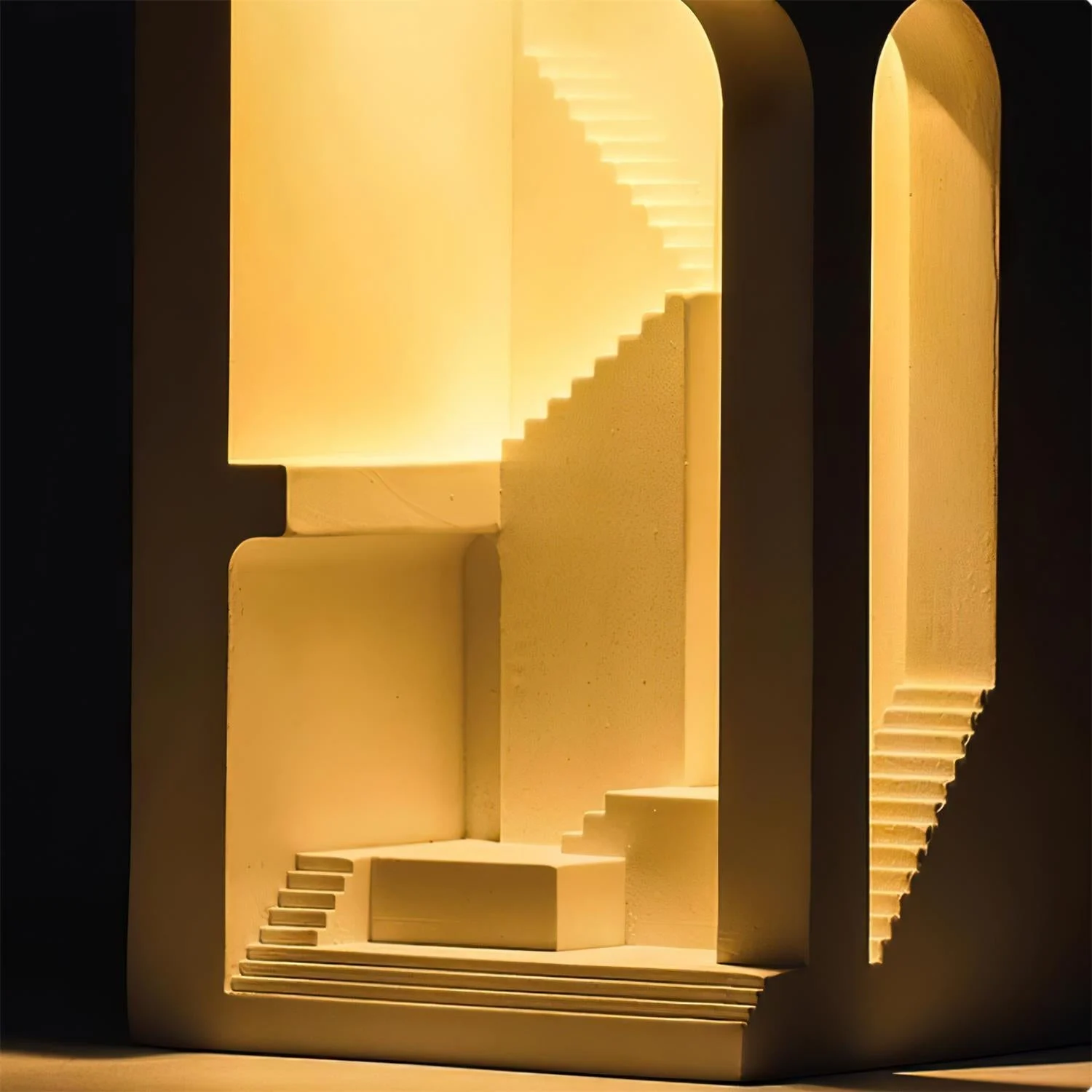 The Nalu Plaster Recessed Wall Light is a portal to a serene architectural dreamscape. Crafted from pure plaster, its intricate relief of arched corridors and ascending staircases evokes a sense of mystery and depth. When illuminated, light flows through its sculptural forms, casting soft shadows that transform walls into poetic narratives. A fusion of minimalism and grandeur, this piece redefines ambient lighting with quiet sophistication.