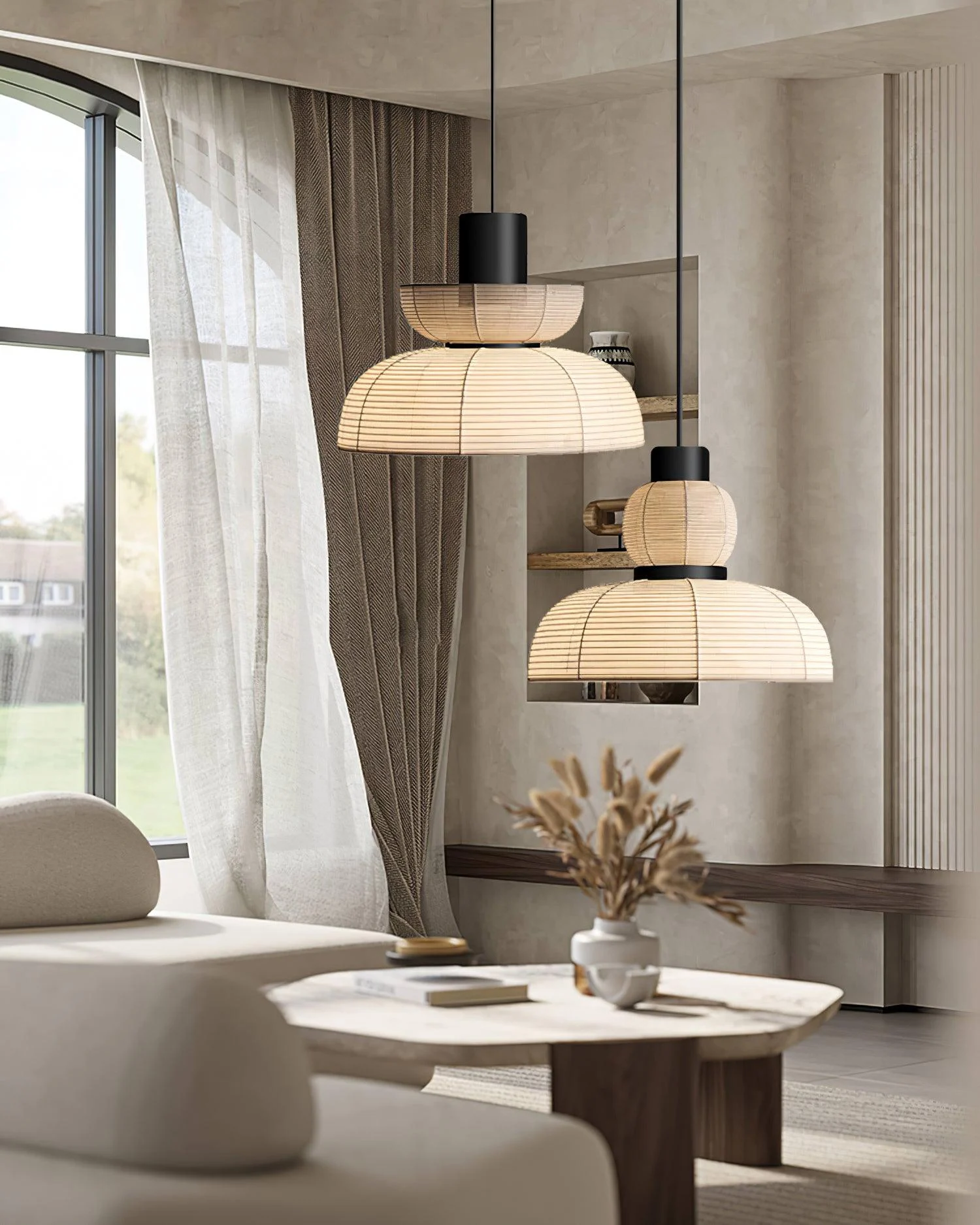 The Nando Pendant Lamp combines chic fabric lampshades, smooth and simple lines, and pure natural aesthetics, creating a warm, sophisticated atmosphere and imbuing any space with a unique, sophisticated soul. Ideal for any luxury interior design, this elegant piece will make a tasteful and timeless statement.