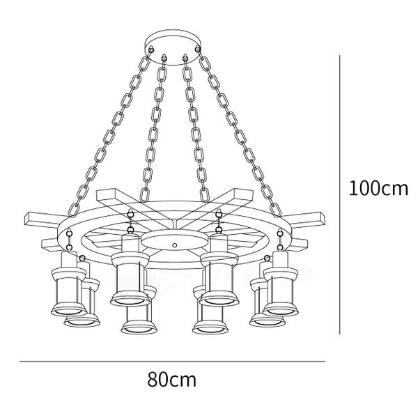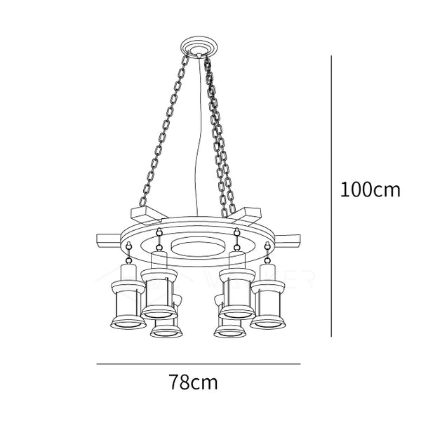 This Nautical Industrial Style Wooden Chandelier will add a touch of rustic charm to any space. The unique combination of classic American farmhouse style and sophisticated nautical industrial design creates a timeless look. Perfect for adding a statement piece to any room.