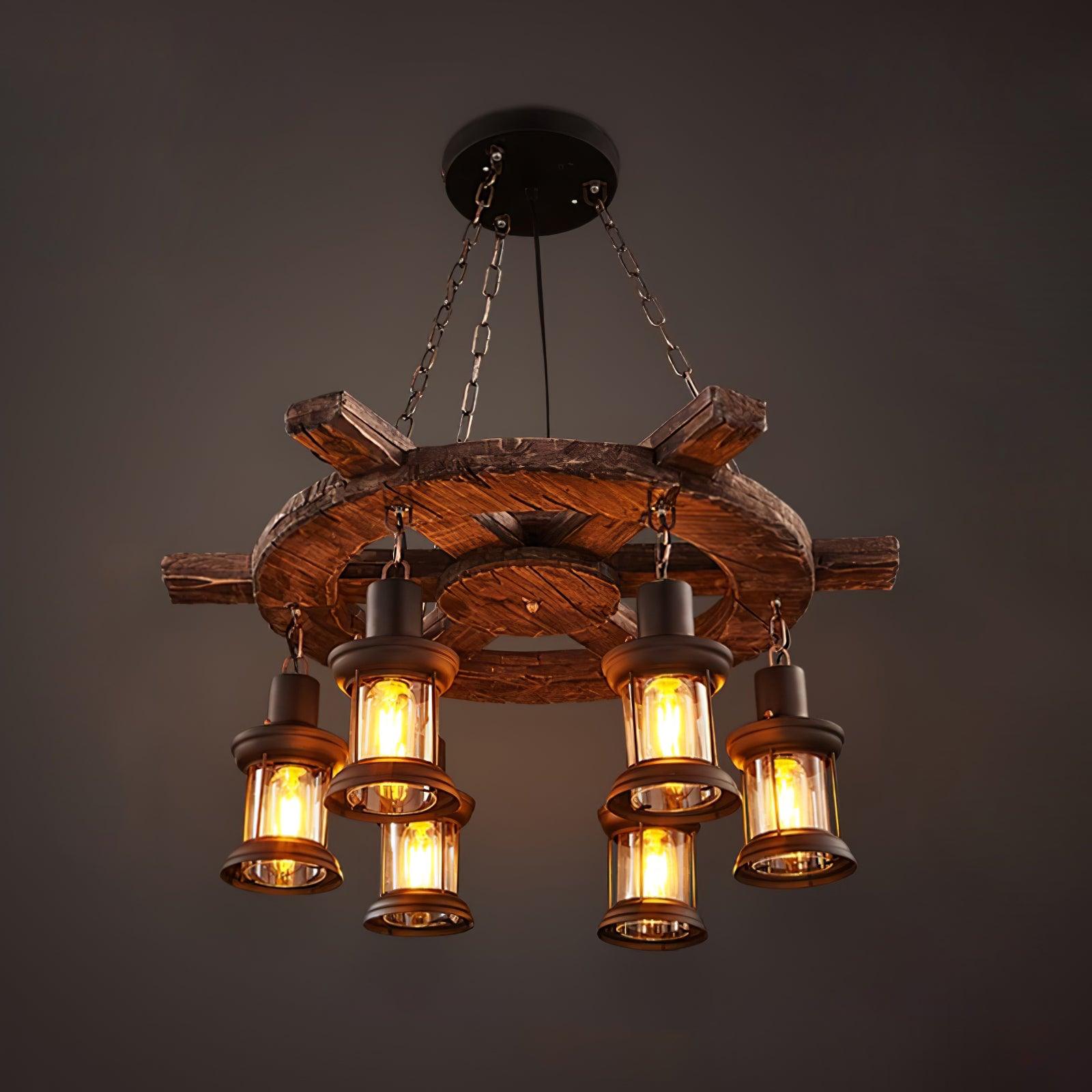 This Nautical Industrial Style Wooden Chandelier will add a touch of rustic charm to any space. The unique combination of classic American farmhouse style and sophisticated nautical industrial design creates a timeless look. Perfect for adding a statement piece to any room.