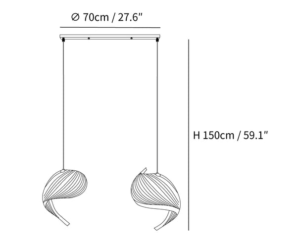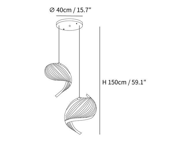 2 Heads Round Canopy Size: Dia 40cm x H 150cm / ∅ 15.7″ x H 59.1″