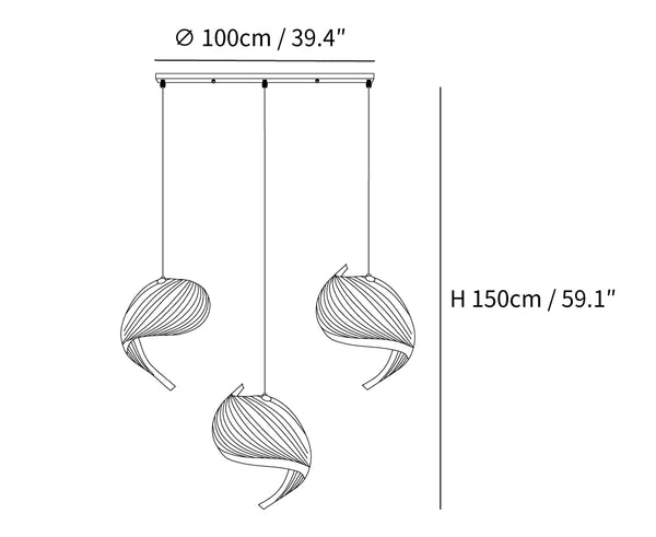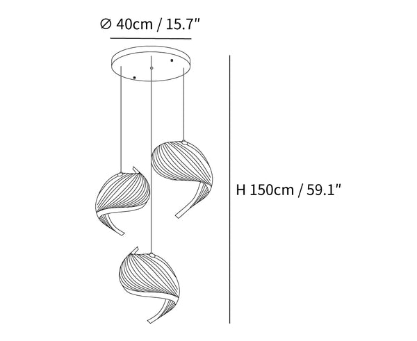 3 Heads Round Canopy Size: Dia 40cm x H 150cm / ∅ 15.7″ x H 59.1″