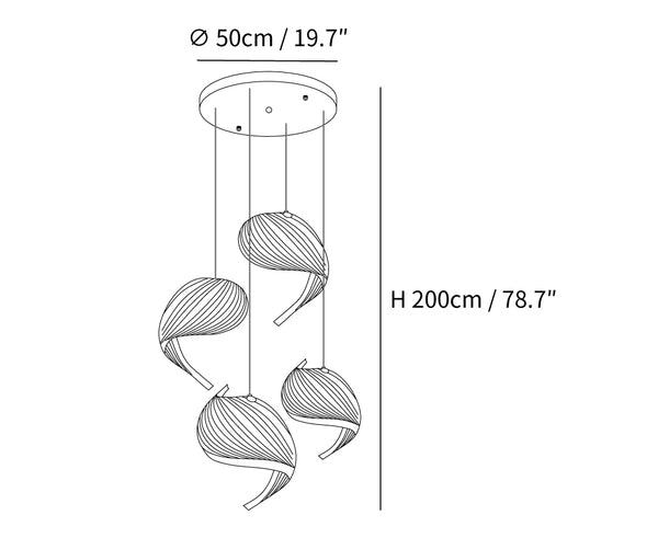 4 Heads Round Canopy Size: Dia 50cm x H 200cm / ∅ 19.7″ x H 78.7″