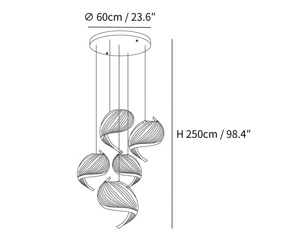 5 Heads Round Canopy Size: Dia 60cm x H 250cm / ∅ 23.6″ x H 98.4″