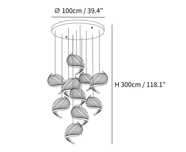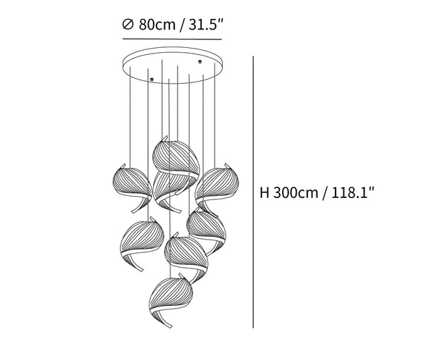 8 Heads Round Canopy Size: Dia 80cm x H 300cm / ∅ 31.5″ x H 118.1″