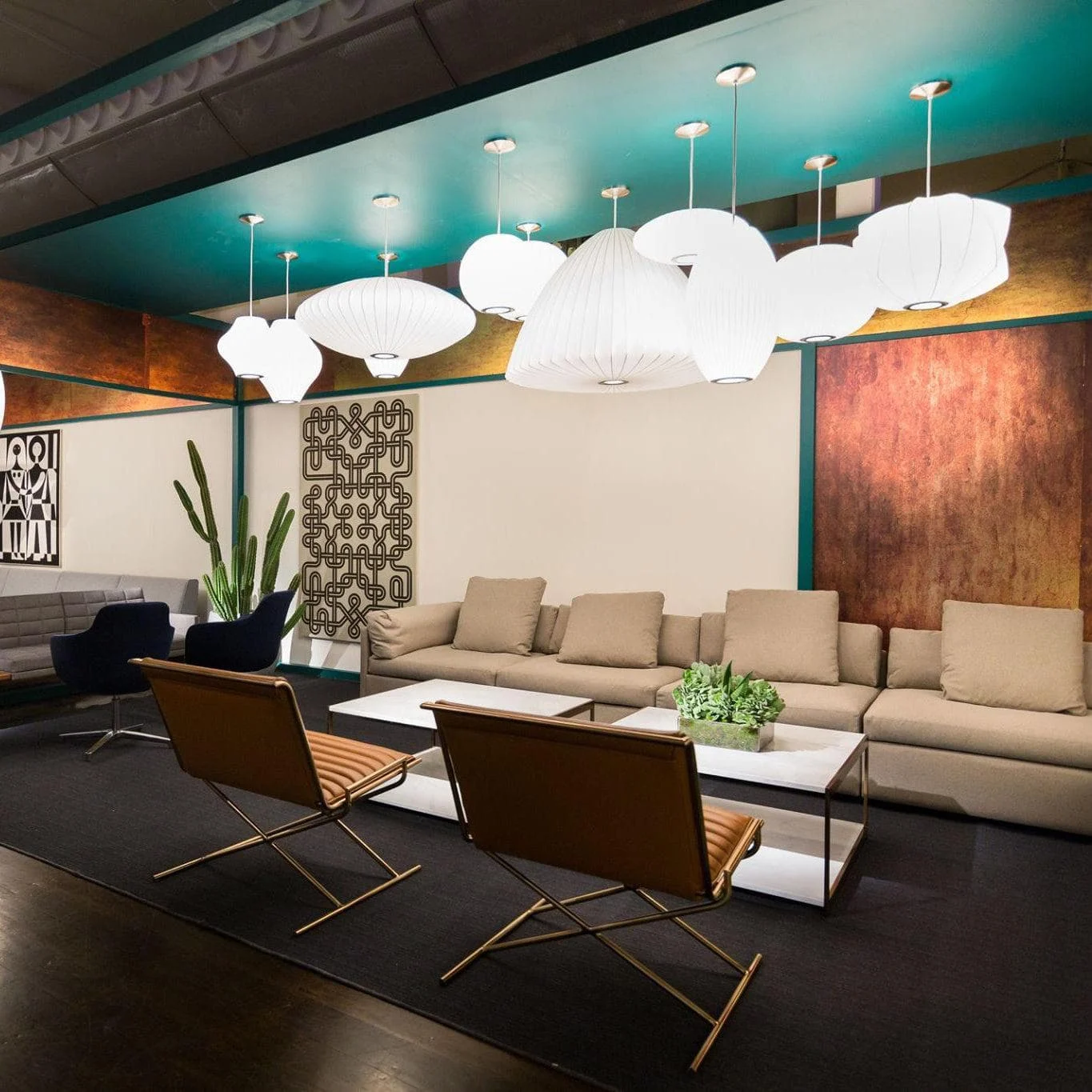 Nelson was inspired by a set of silk-covered Swedish hanging lamps. An ingenious and resourceful designer, Create the first set of Nelson Bubble Lamps using a translucent white plastic spray.