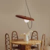 - This minimalist pendant light is crafted from a lightweight yet sturdy wrought iron material and will look great whether installed on a warm family table or a romantic date dining room.