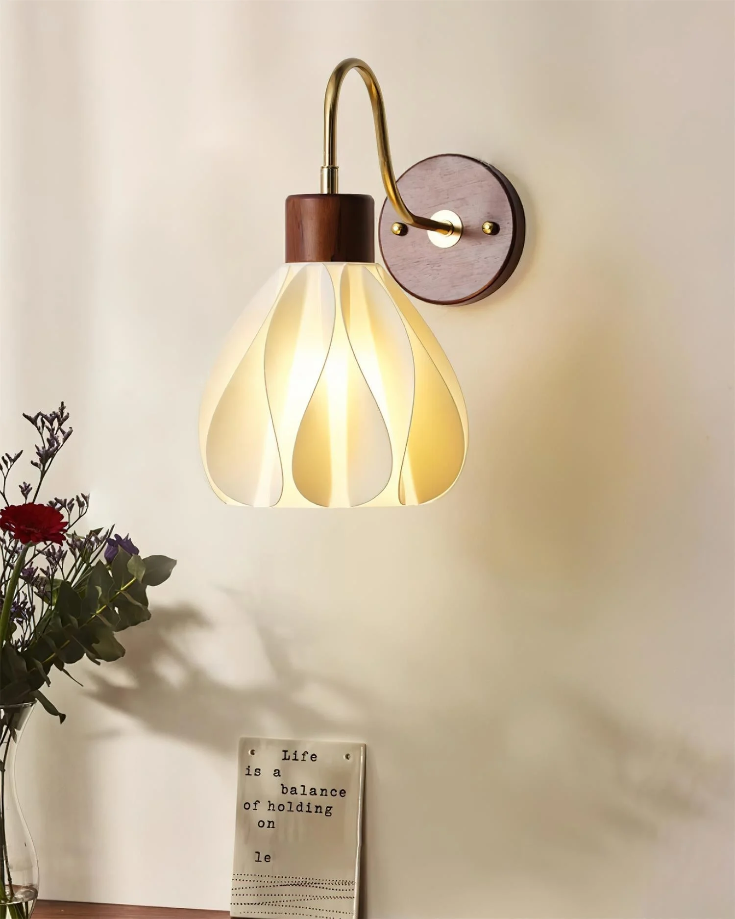 The Novus Wall Lamp from Docos, a perfect fusion of nature-inspired design and modern elegance. The lamp features a petal-like shade that beautifully diffuses warm light, creating a soft, ambient glow. Its Metal and wood accents add a touch of rustic charm, while the delicate curves provide a sophisticated, contemporary feel. Let its organic shape and elegant materials illuminate your space with refined warmth and style.